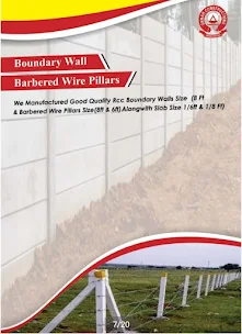 Qamar Constructions Manufacture Good Quality Rcc Pillers | Concrete pole | Cement/Concrete Boundary Walls Size (8 Ft) & Barbered Wire Pillars Size (8ft & 6ft) Along with Slab Size 1/6ft & 1/8ft . These pillars are ideal for fencing and securing open areas such as agricultural land, industrial plots and boundaries.